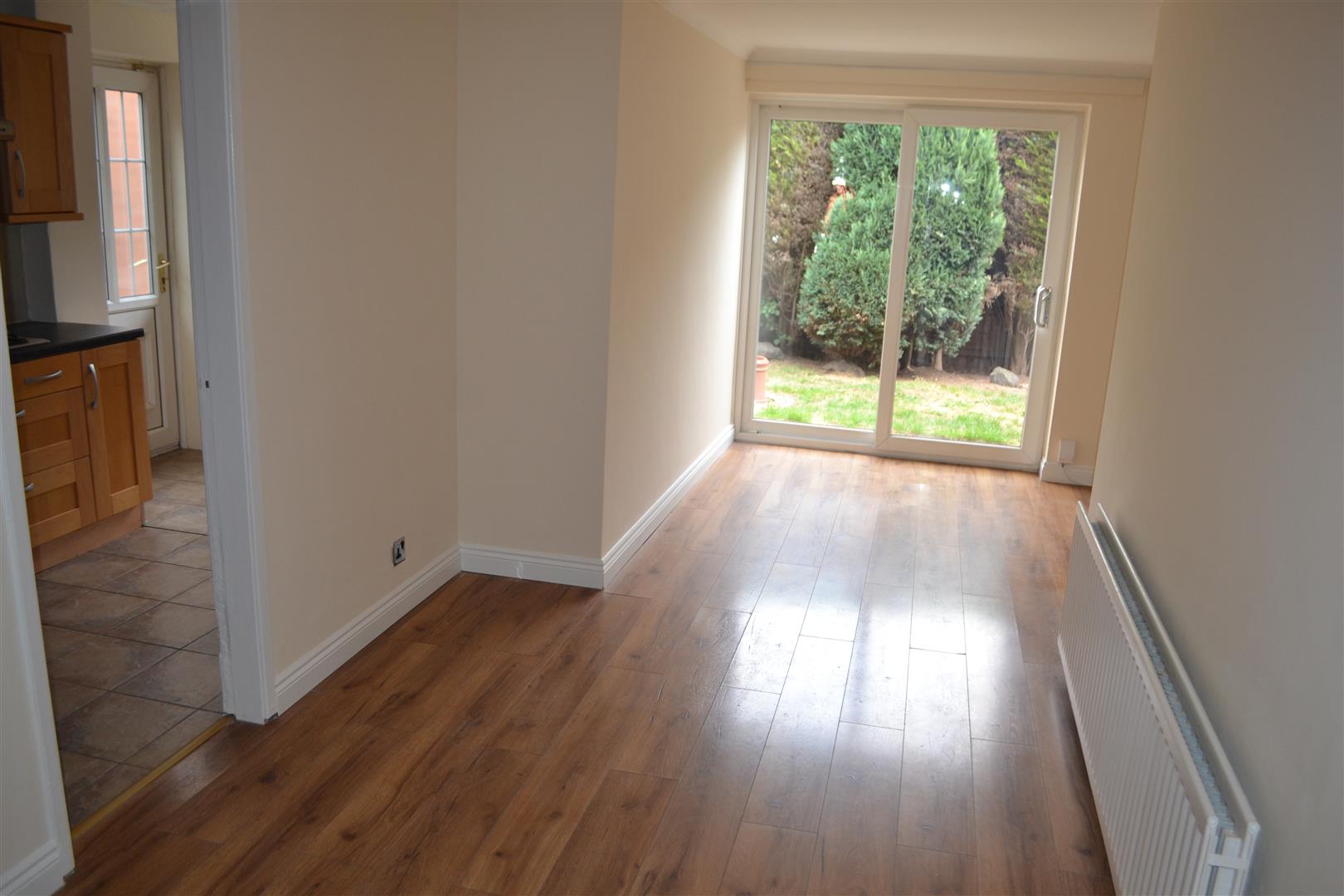 fantastic Rear Living Space being 'L' shaped and offering a Dining Area (with open doorway to kitchen and door to under stairs storage cupboard) which in turn leads on to a Rear Lounge Area having patio door leading out to the Rear Garden