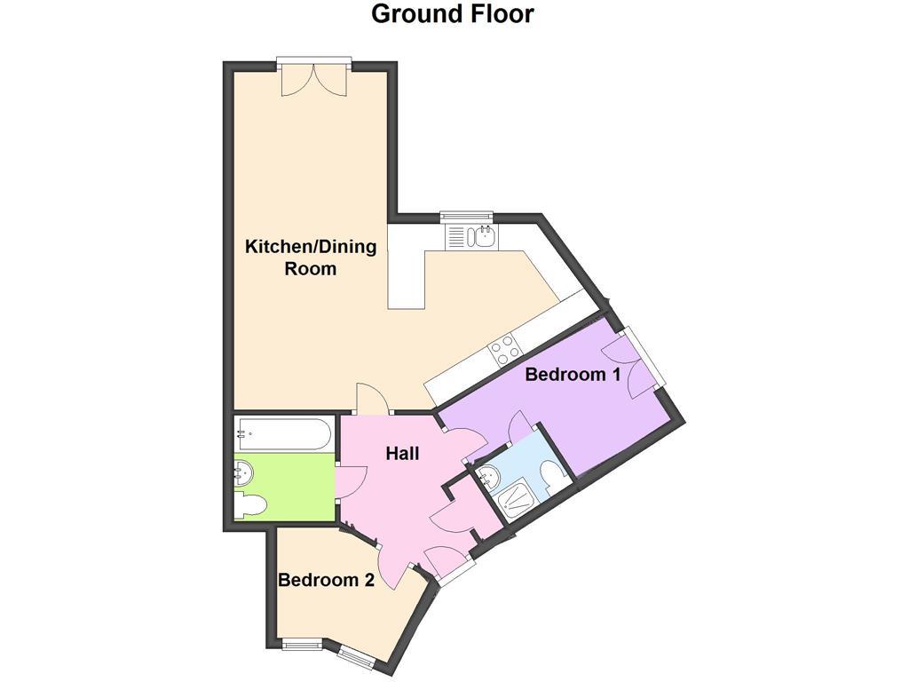 2 bedrooms, 1 bathrooms, 1 receptions