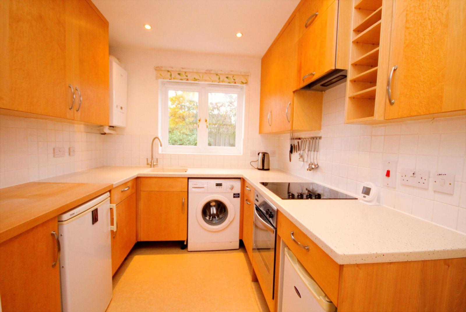 Fitted in a range of bespoke base and wall mounted units with solid maple door/drawer fronts and bird’s eye maple veneered panels. Corian worktops and tiled splashbacks. Sink unit with mixer tap. Built-in Stoves electric oven with 4 ring ceramic hob and extractor hood over. Bosch automatic washing machine. Low level Haier fridge/freezer. Further recess with small Ice King fridge. Wall mounted gas fired Ideal combi-boiler. Radiator. Inset ceiling lights. Vinyl flooring. uPVC double glazed window to rear elevation. Door opens into,